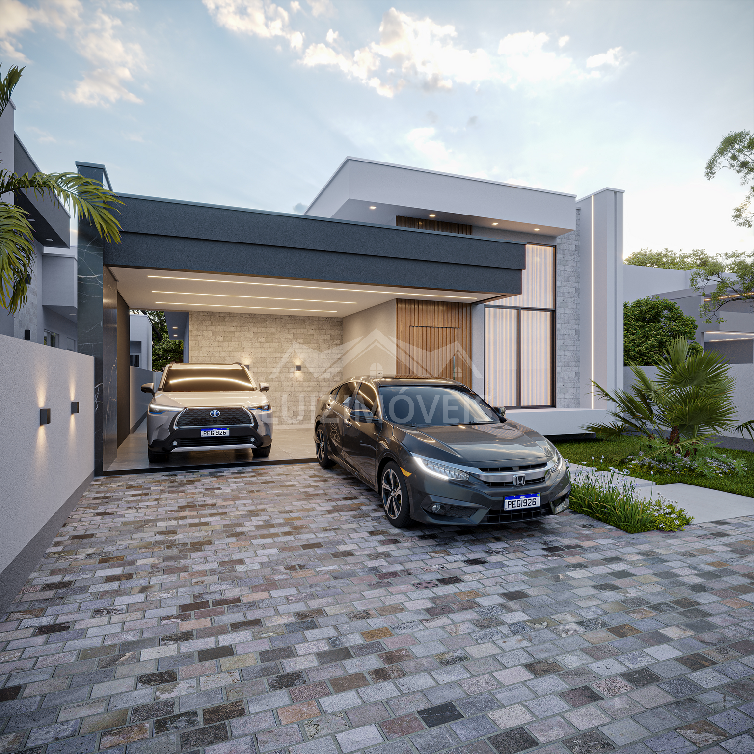 🚗 Garagem para 2 carros + terreno plano de 300m², totalmente murado e com jardinagem já pronta.